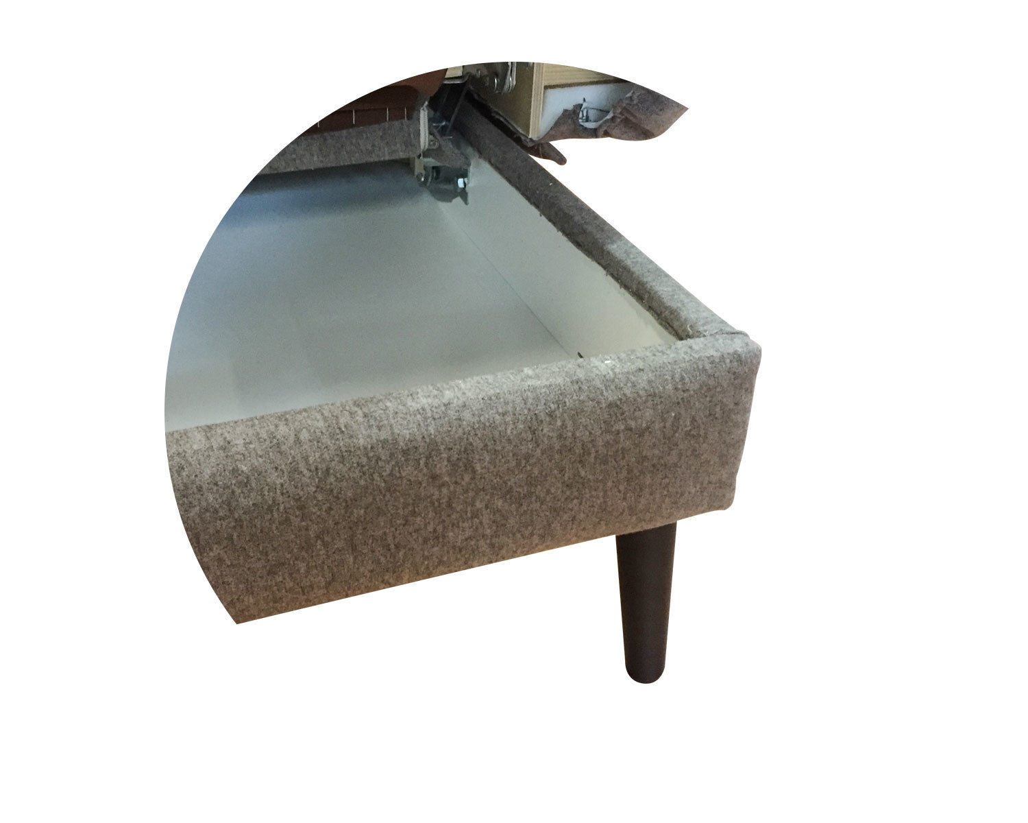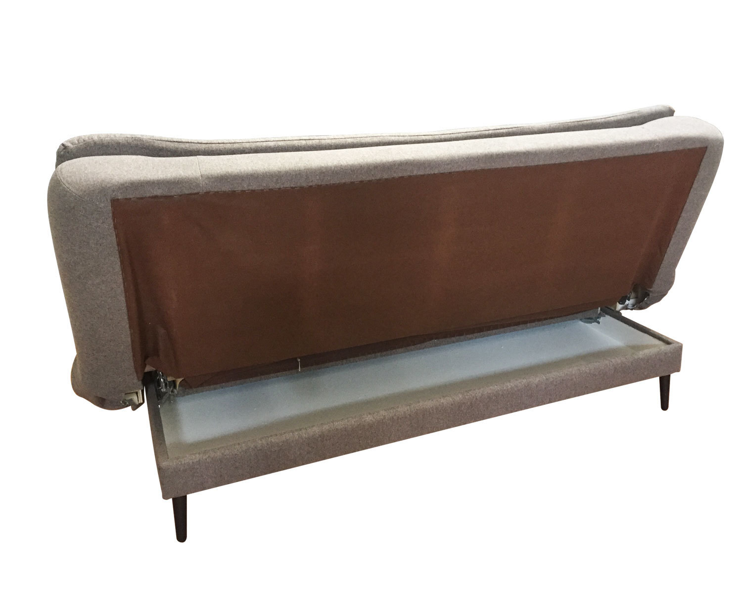 Укомплектован механизмом клик-клак, который позволяет фиксировать диван в трех разных положениях и ящиком для белья. Высота ящика 95 мм.